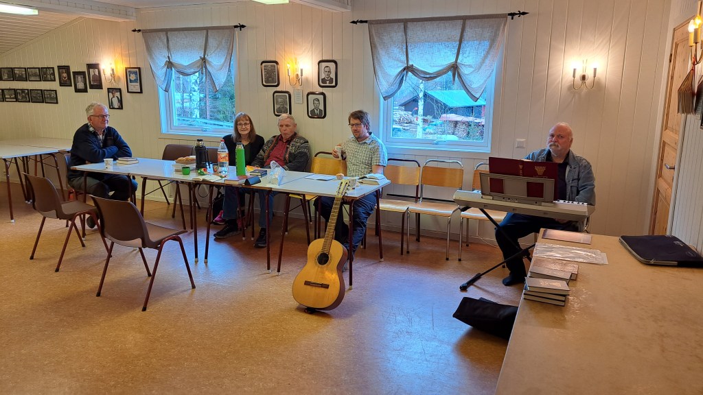 Det kom ingen fra stedet på møtet denne kvelden. Men vi var 6 tilreisende. «Når vi gjør det Gud vil, da er vi på hellig grunn». «Vi preker i Kristi sted.» Dette er noe av det som ble sagt denne kvelden.