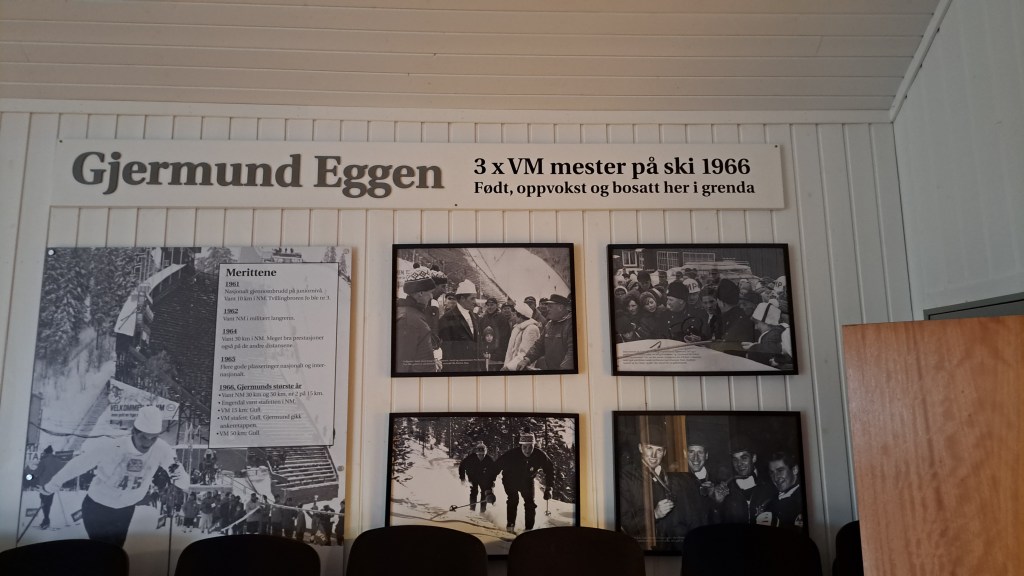 Denne våren har vi begynt å ha et møte i måneden i Engerdal. Lekmannsmisjonen sender oss predikant og står som arrangør. Vi reiser da over til Jordet fra Rena, og følger Engerdalen nordover til vi kommer midtveis på vannet Engeren, til Hylleråsen. Der får vi leie et samfunnshus, Åsvang, å ha kristne samlinger i. Det er vel ca 30 husstander i Hylleråsen, som igjen ligger sør i Engerdal kommune. I denne bygda er det langrennsløperen Gjermund Eggen som bygdas sønn, og han pryder veggen på Samfunnshuset.