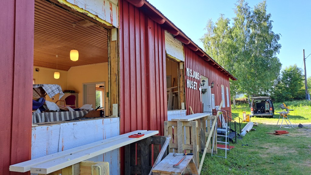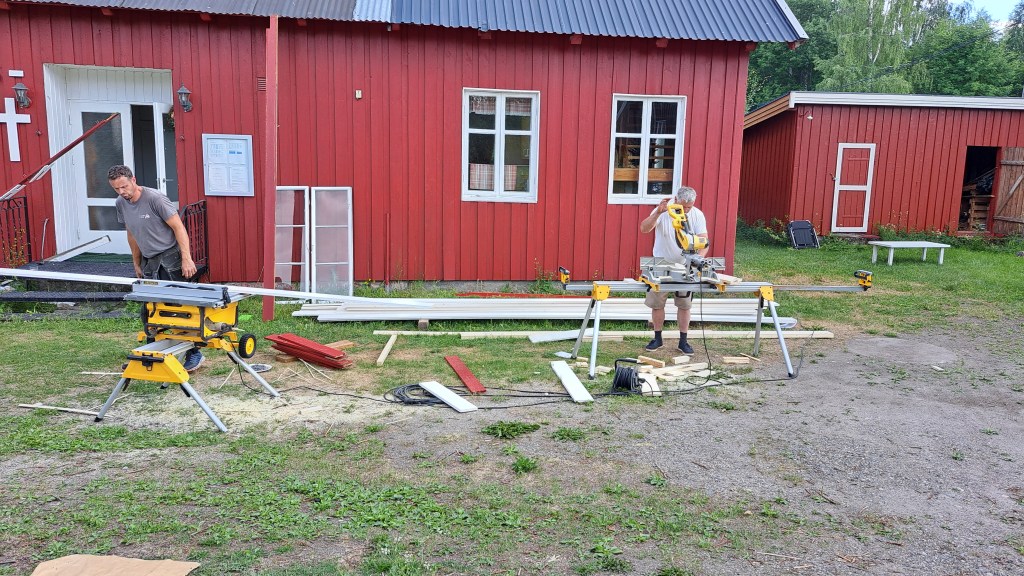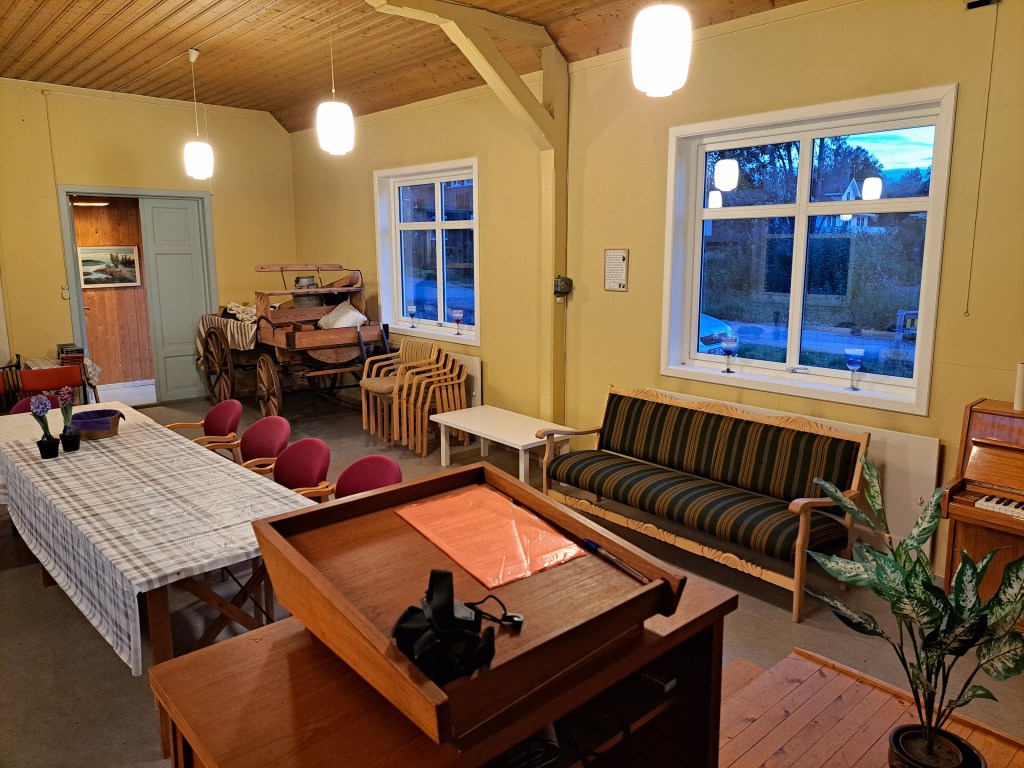 Denne sommeren ble vinduene i storsalen byttet. Dette tror vi var et nødvendig løft for huset, og som vil være besparende for oss i åra som kommer. De gamle ettlags-vinduene isolerte dårlig. De nye vinduene har gjennomgående kors-sprosse, og kan åpnes helt. Vi er så fornøyde, og gleder oss til kulda setter inn så vi kan se effekten.