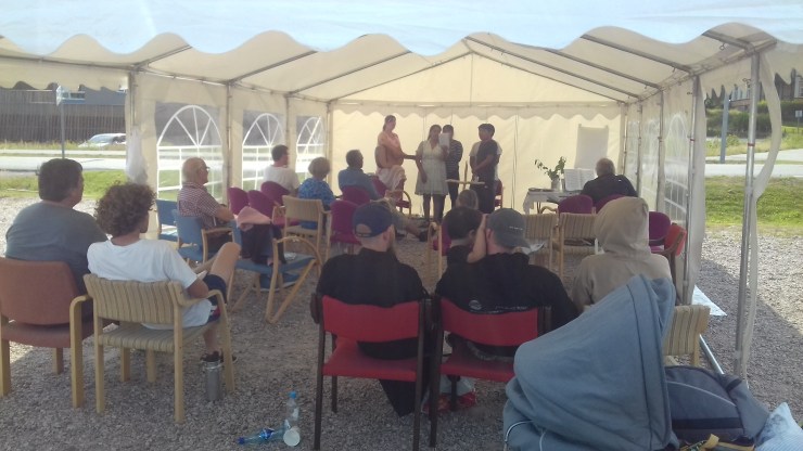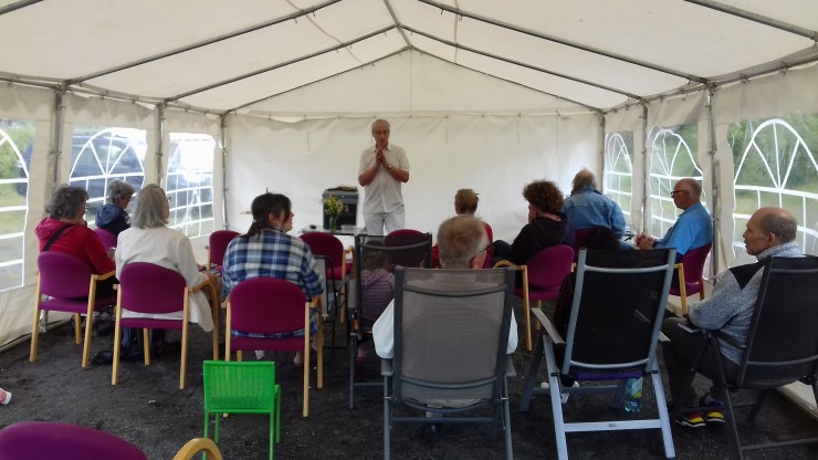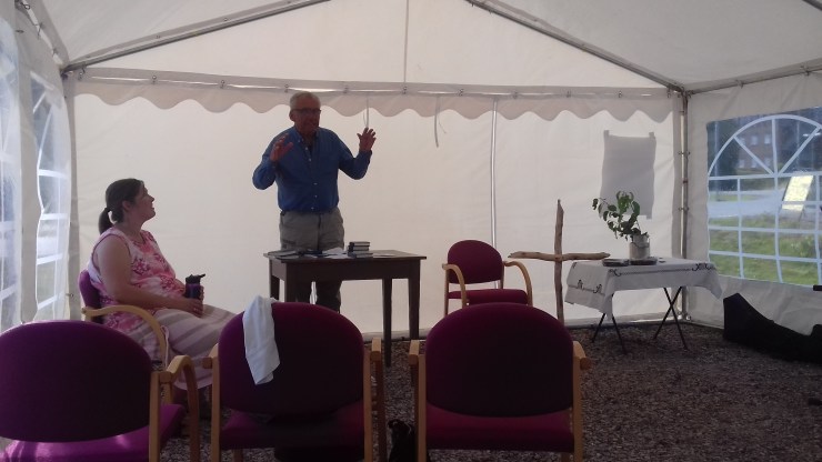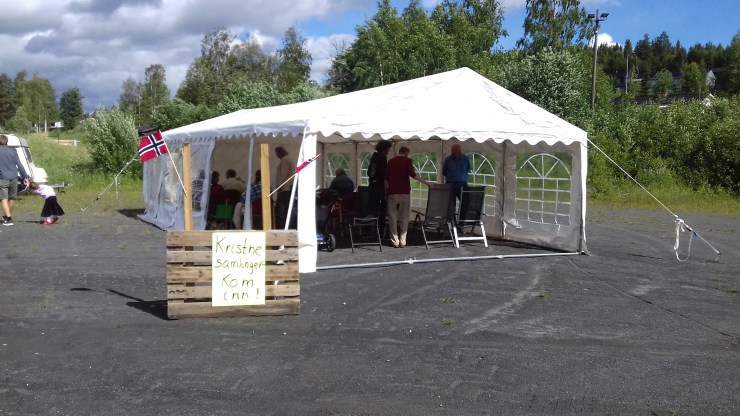 For andre gang hadde vi teltmøter på Koppang, ved idrettsplassen. Møtene var i samarbeid med Misjon Sarepta og vi hadde besøk av Signe og Audun Hjellvik fra Osterøy. Audun forkynte Guds Ord, og på søndag fremholdt han ut fra Guds Ord kjennetegn på utlendinger, som de troende er her i denne verden. Utlendinger har et annet språk, de har en annen oppførsel, de bruker kart og kompass, de har reiseforsikring, de lengter hjem, og de har med seg noe fra utlandet når de kommer hjem, blant annet.