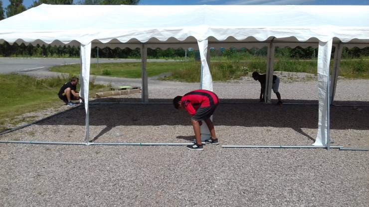 En ide vi fikk underveis var å dekorere teltet. Kanskje kunne vi ha skrevet noe på mønet, som kunne stå der permanent, f eks. «Han er vår fred», «Hans banner over meg er kjærlighet» eller «Jesu Guds Sønns blod renser oss fra all synd».